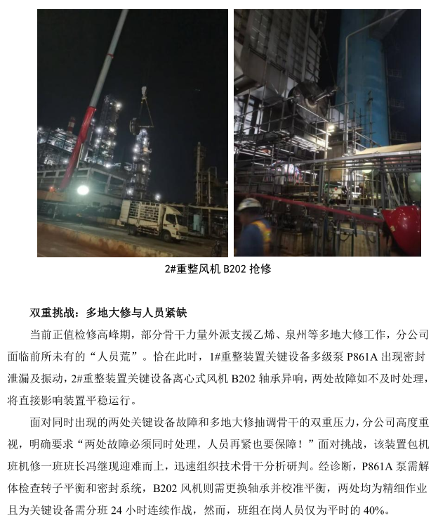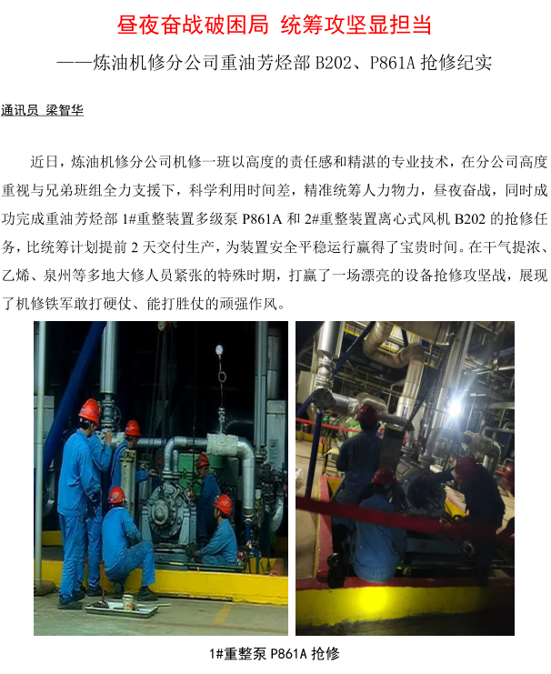 煉油機(jī)修分公司重油芳烴部 B202、P861A 搶修紀(jì)實